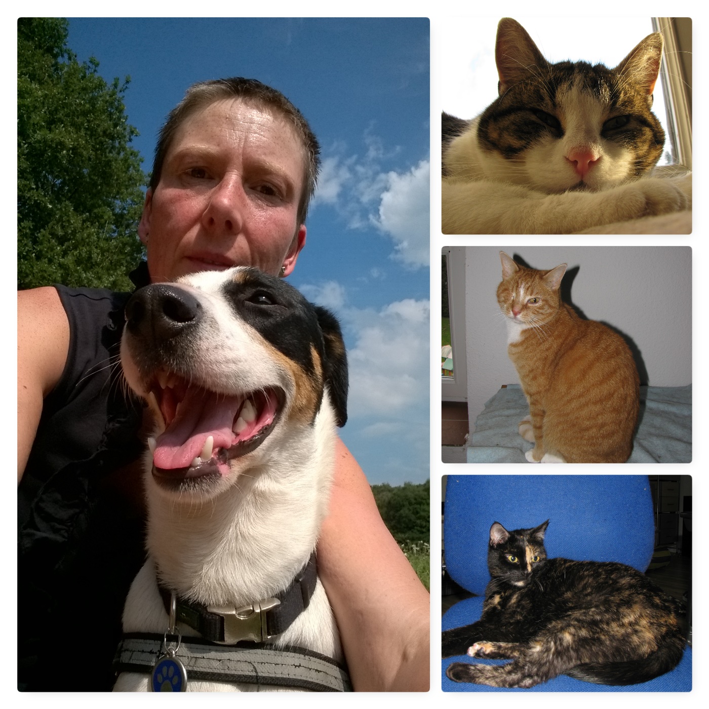 Zusammen mit meinem Lebenspartner, einem Hund und drei Katzen lebe ich seid 2013 in Rees-Haldern.